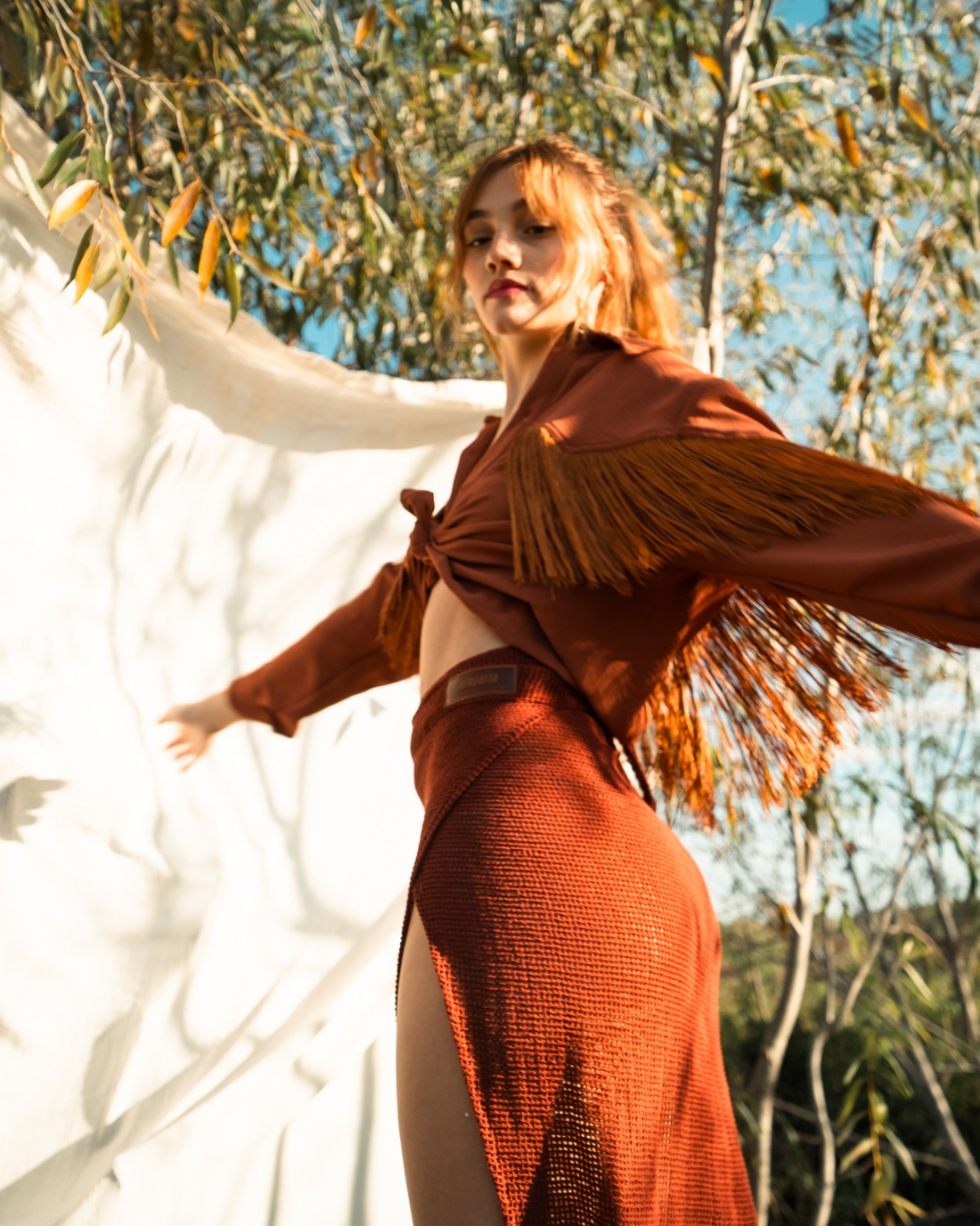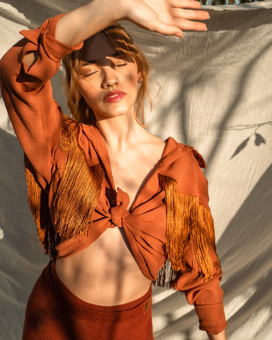 Camisa a la cadera con flecos.